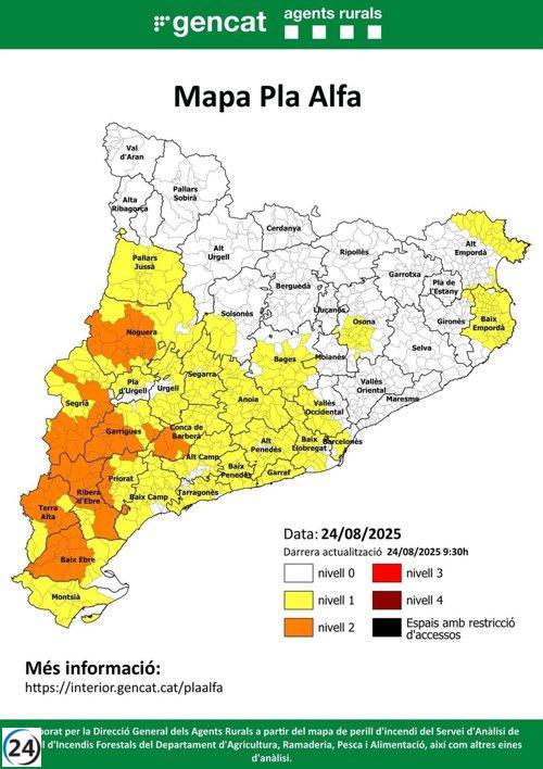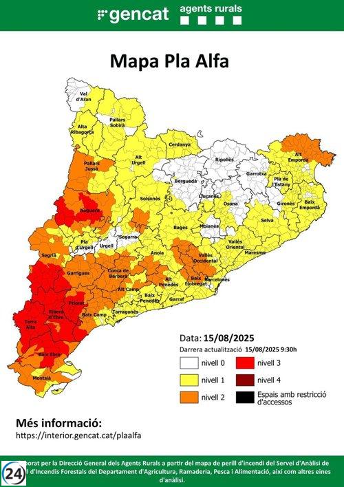 Alerta máxima por incendios en 8 comarcas de Tarragona y Lleida este viernes.