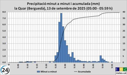 Barcelona: La Quar establece un nuevo récord de lluvia con 7,8 mm en un solo minuto.