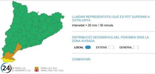 Meteocat emite alertas por lluvias en Montsià, Baix Ebre y Baix Camp.